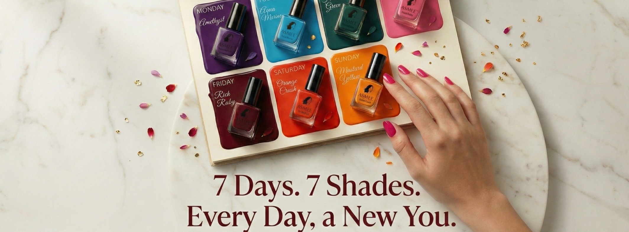 Asmee 7 Days 7 Shades Combo | Premium Gel Finish Nail Polish Set (Pack of 7)