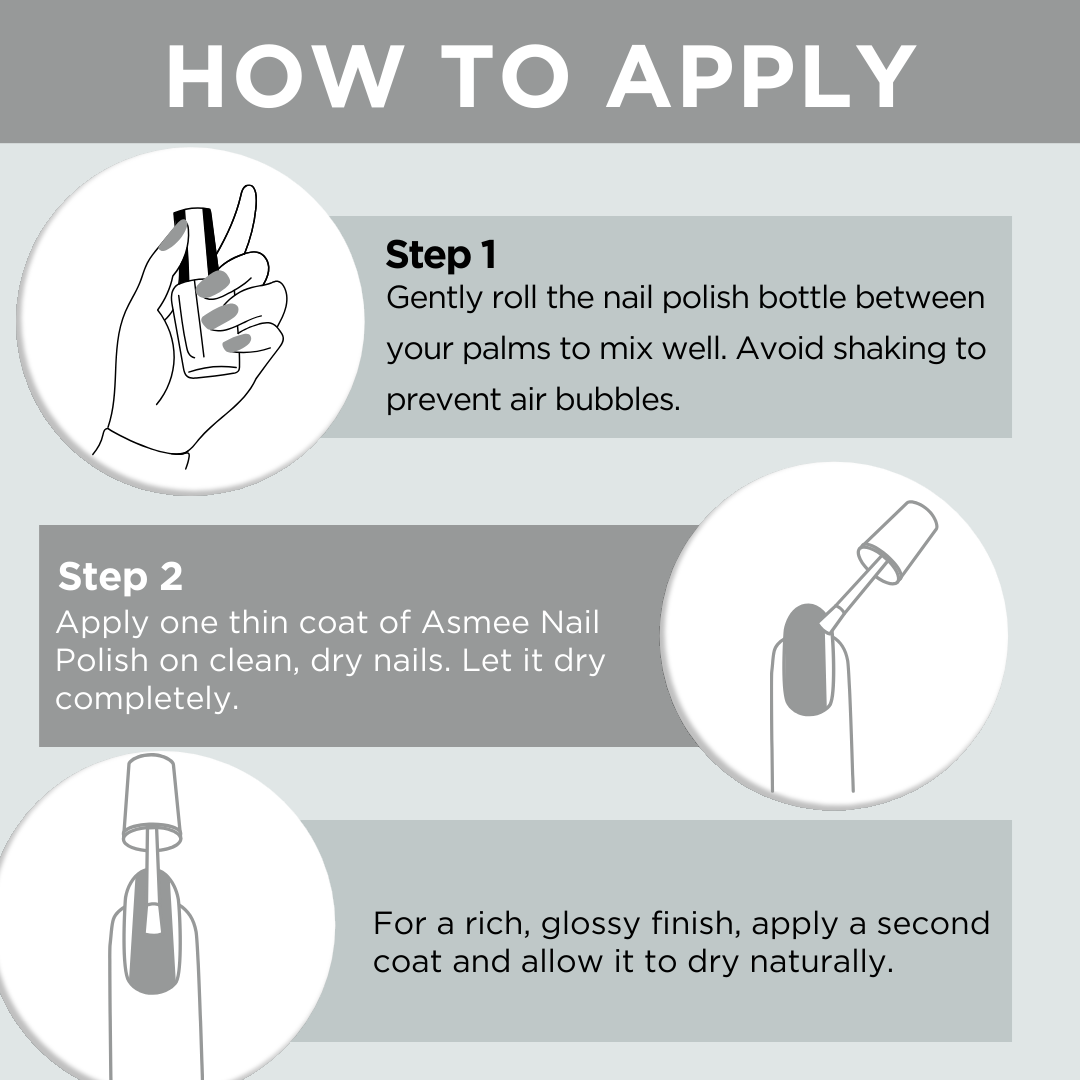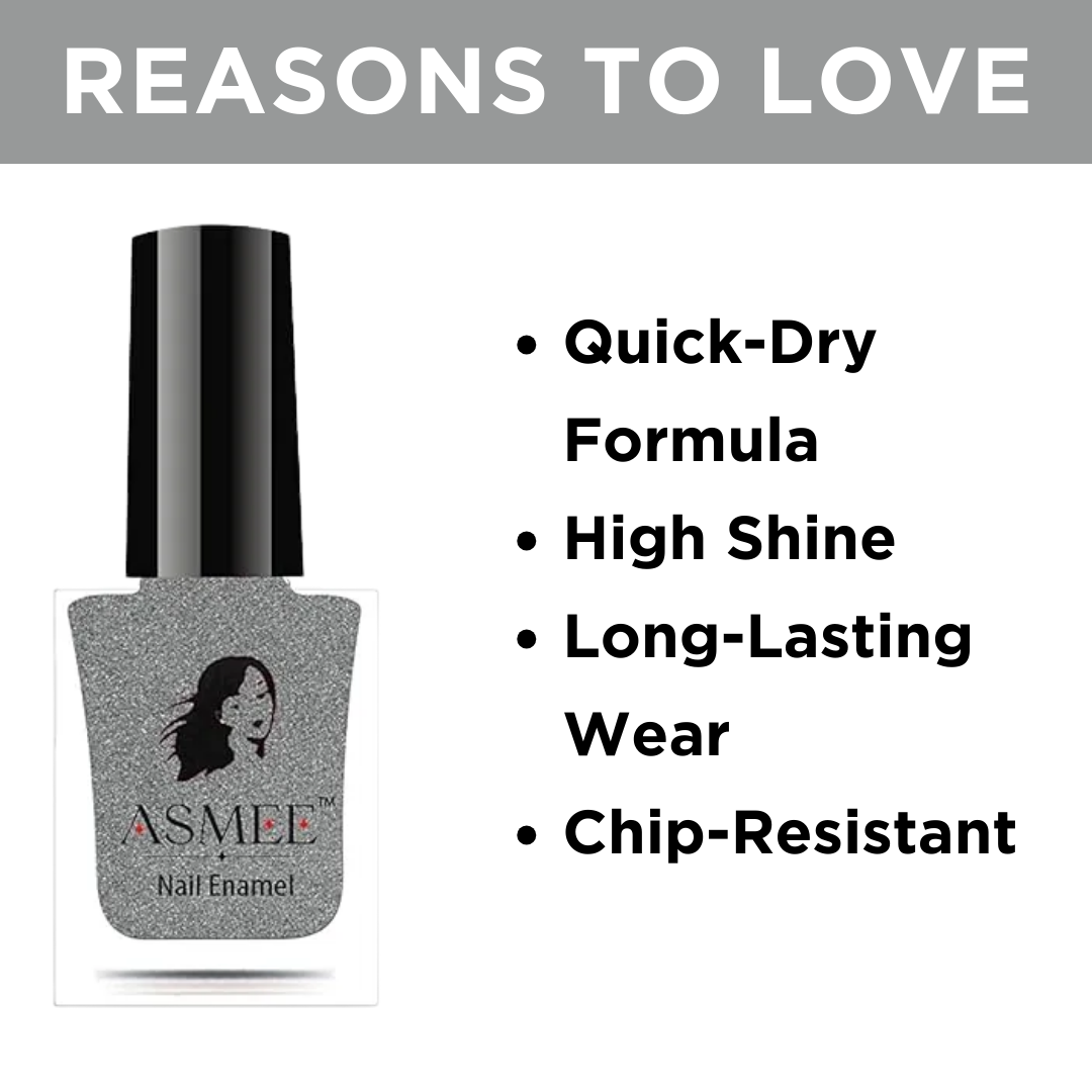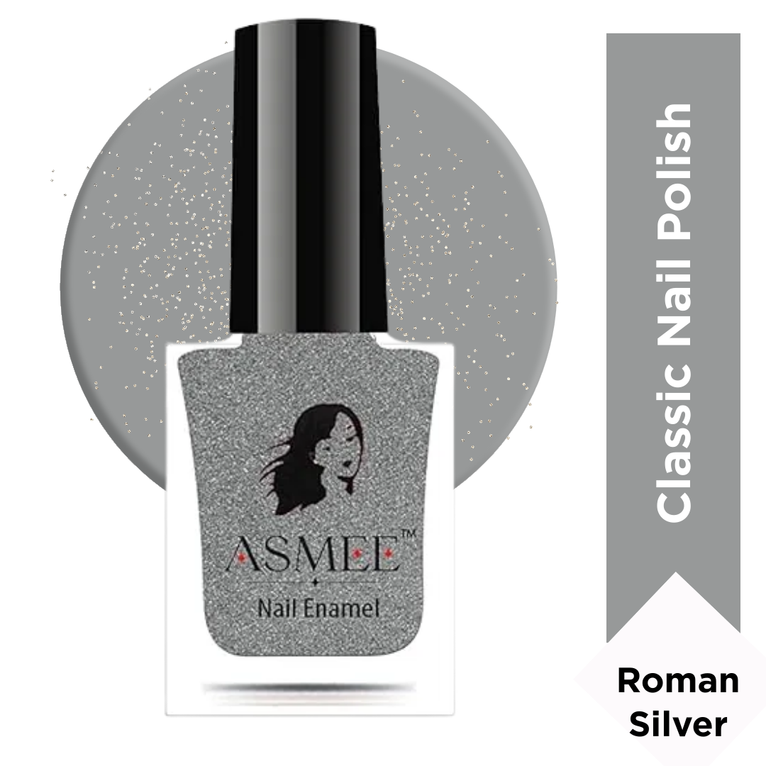 Bring timeless sophistication to your nails with Asmee Classic Nail Polish in Roman Silver. This metallic shade combines sleek silver tones with a gel-like glossy finish, making it the perfect choice for both everyday chic and glamorous evening looks. With its quick-dry, chip-resistant formula, Roman Silver ensures your nails remain vibrant and flawless for up to 6 days. The flat round brush provides smooth, streak-free application, allowing you to achieve salon-quality results at home.