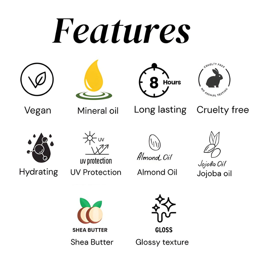 Enriched with Vitamin E, it keeps your lips hydrated, soft, and nourished — without stickiness or heaviness. Perfect for night-outs, festive glam, editorial looks, or any moment that calls for powerful, statement-making colour.