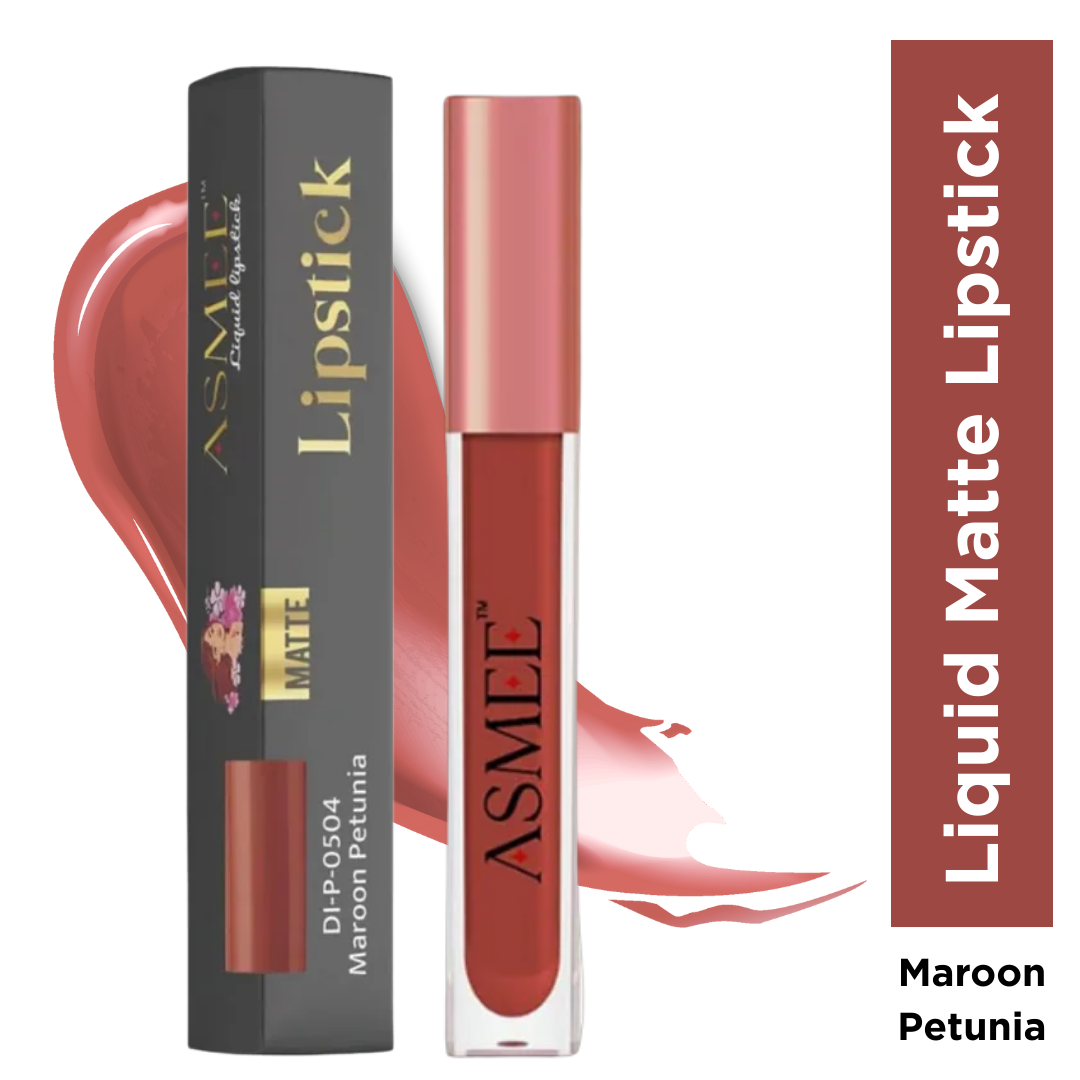 Unveil bold elegance with Asmee Liquid Matte Lipstick in Maroon Petunia, a deep, sophisticated shade inspired by the richness of blooming petunias. This lipstick offers intense pigmentation with a velvety matte finish that lasts up to 12 hours, keeping your lips stunning and confident all day. Infused with Jojoba Oil and Vitamin E, it delivers nourishment and hydration, ensuring a smooth, non-drying feel with every application.