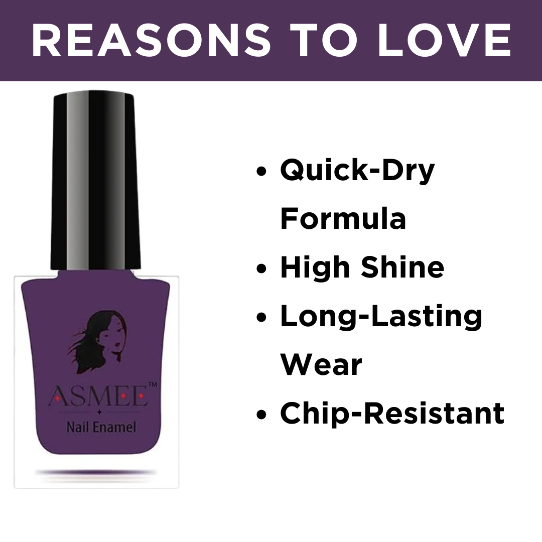 Channel the mystical beauty of gemstones with Asmee Premium Gel Nail Polish in Amethyst. Inspired by the rich tones of the precious amethyst crystal, this shade offers a deep, regal purple with a gel-like glossy finish that exudes elegance and confidence. Designed for professional-grade results, the smooth precision brush ensures flawless, streak-free application, while the chip-resistant formula provides long-lasting wear. Proudly crafted in India, this polish is 100% vegan, cruelty-free, FDA-approved, and free from harmful chemicals, making it both safe and ethical for everyday use.