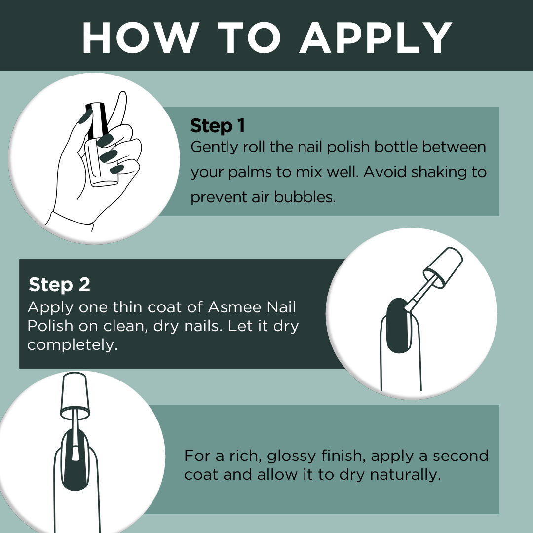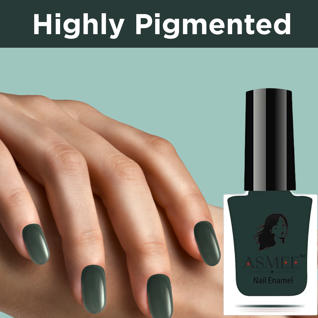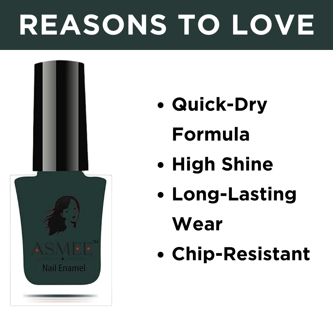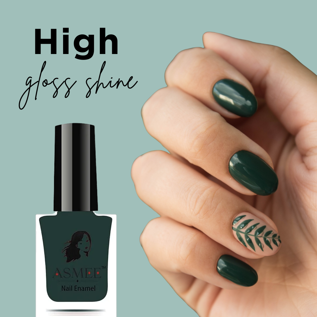 Step into bold sophistication with Asmee Premium Gel Nail Polish in Forest Green, a deep, elegant shade inspired by the richness of nature. Its luxurious gel-like glossy finish delivers salon-quality results in just a few strokes, while the smooth precision brush ensures streak-free coverage. Designed for durability, this polish offers chip-resistant, long-lasting wear, keeping your nails flawless for days. Proudly made in India, the formula is 100% vegan, cruelty-free, FDA-approved, and free from harmful chemicals, making it safe for regular use.
